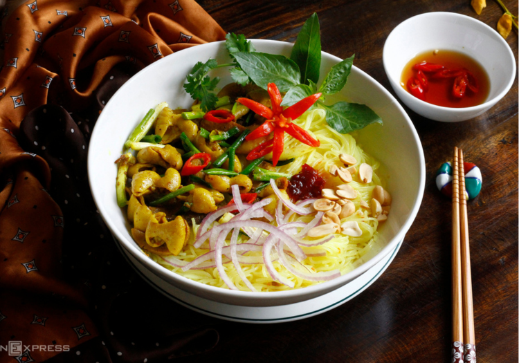 Món ăn đậm chất Huế thu hút bởi lòng giòn dai, có chút béo ngậy, màu vàng ươm quyện với bún mềm thấm vị ngọt ngon từ lòng, vị the cay kích thích vị giác.