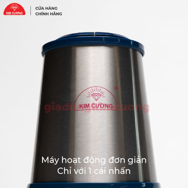 Với thiết kế hình trụ dài, máy xay thịt Kim Cương sẽ không chiếm quá nhiều diện tích căn bếp. Đồng thời phần đựng thực phẩm có vành miệng rộng giúp dễ dàng cho thực phẩm vào máy hơn.