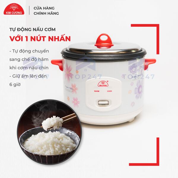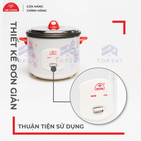 Kim Cương là thương hiệu gia dụng chất lượng đã có mặt trên thị trường Việt Nam hơn 20 năm. Trong đó, nồi cơm điện Kim Cương 1.8 lít nắp rời chống dính vẫn luôn là lựa chọn hàng đầu của chị em nội trợ bởi mẫu mã kiểu dáng đẹp, giá cả cạnh tranh, chất lượng sản phẩm tốt. Hãy cùng khám phá sản phẩm này có gì ấn tượng nhé.