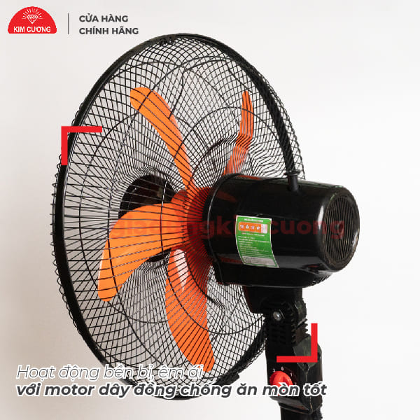 Điểm cộng lớn nhất của quạt đứng công nghiệp Kim Cương là bộ phận lồng quạt làm bằng chất liệu thép không gỉ có khả năng chịu lực tốt, đảm bảo sự an toàn cho người sử dụng và giúp kéo dài tuổi thọ cho quạt trong suốt quá trình sử dụng.