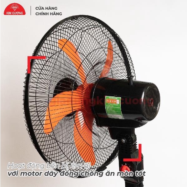 Quạt đứng công nghiệp Kim Cương với cơ chế hoạt động: dùng nguồn điện tác động vào động cơ làm cánh quạt quay từ đó tạo ra gió. Bên cạnh đó, với công suất lên đến 65 W, quạt đứng Kim Cương có thể tạo ra số vòng quay 1200 vòng/phút giúp làm mát không khí xung quanh ở mức tối ưu nhất.