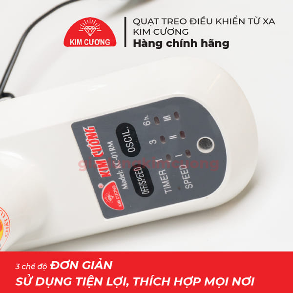 Điểm cộng lớn nhất có thể kể đến của quạt treo điều khiển remote Kim Cương là chức năng điều khiển bằng remote. Không cần phải di chuyển lại gần quạt, bạn vẫn có thể điều khiển thay đổi tính năng của quạt theo nhu cầu sử dụng của mình.